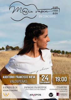 El sábado 24 de septiembre a las 19.00 horas en el Teatro-Auditorio “Francisco Nieva”, tendrá lugar un Concierto de la cantautora valdepeñera “María Vasán”, a beneficio de Hogar de Nazaret.