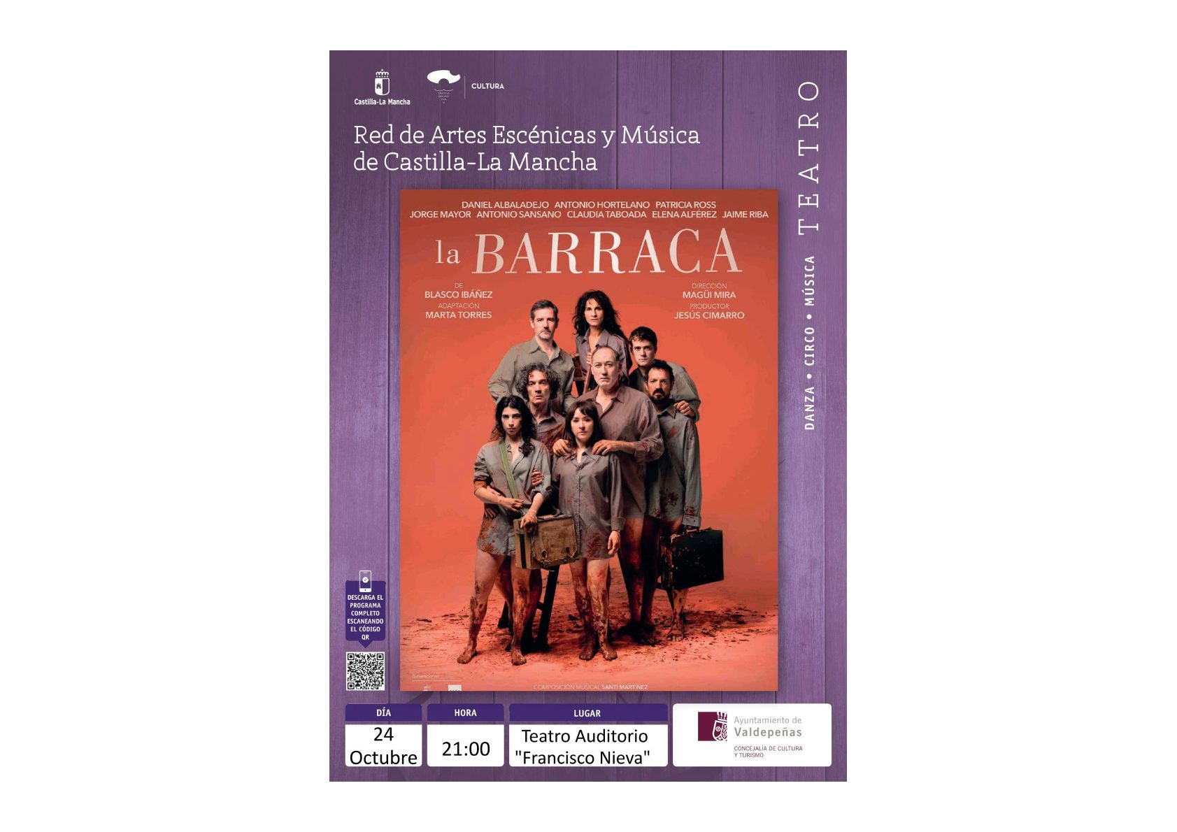 Esta función podemos disfrutarla gracias al Programa Actuamos de la Red de Artes Escénicas de Castilla La Mancha en colaboración con el Ayuntamiento de Valdepeñas.