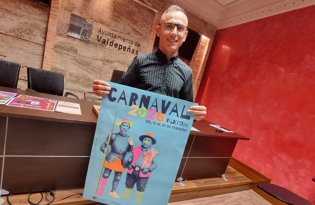 El Carnaval de Valdepeñas se ha presentado este año bajo un cartel elegido mediante un concurso del que resultó ganadora la murciano Anna Serrano Rodríguez, con una ilustración protagonizada por Don Quijote y Sancho Panza.