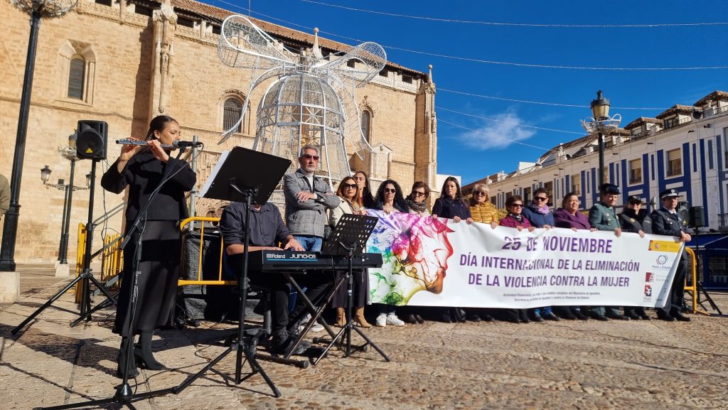 Durante el acto central del Día Internacional Contra la Violencia de Género se ha procedido a la lectura de un manifiesto a cargo del Consejo Local de la Mujer, con la actuación musical del profesorado de la Escuela de Municipal de Música y Danza ‘Ignacio Morales Nieva’.