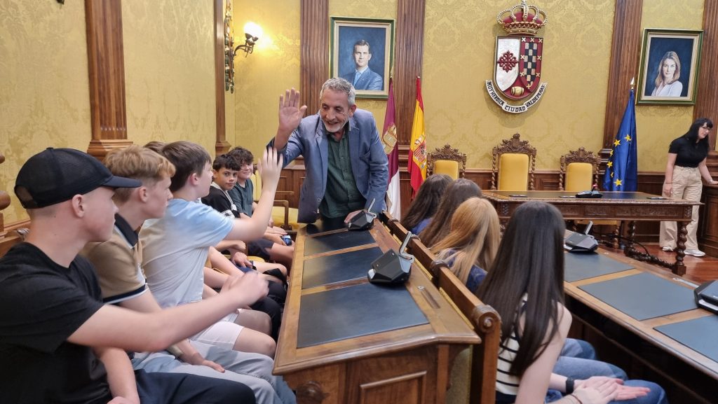 El alcalde de Valdepeñas, Jesús Martín, ha recibido este jueves a un grupo de 30 estudiantes ingleses de Bishop Heber High School de Malpas, del condado de Cheshire, que se encuentran de intercambio educativo con el IES Bernardo Balbuena.