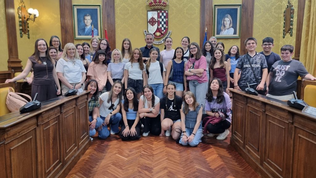 El alcalde de Valdepeñas, Jesús Martín, ha recibido este lunes a un grupo de alumnos y profesorado alemán y portugués que se encuentra de intercambio con el IES Gregorio Prieto, en el marco de un proyecto Erasmus+ que gira en torno a la concienciación sobre la ecología y la sostenibilidad.