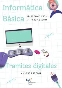 - De manera presencial a papel en las Oficinas de la Universidad Popular del Centro Cultural Cecilio Muñoz Fillol (c/ Pangino, 8 – 2ª Planta) Horario: 9:00 a 14.00 y de 17:00 a 20:00 h